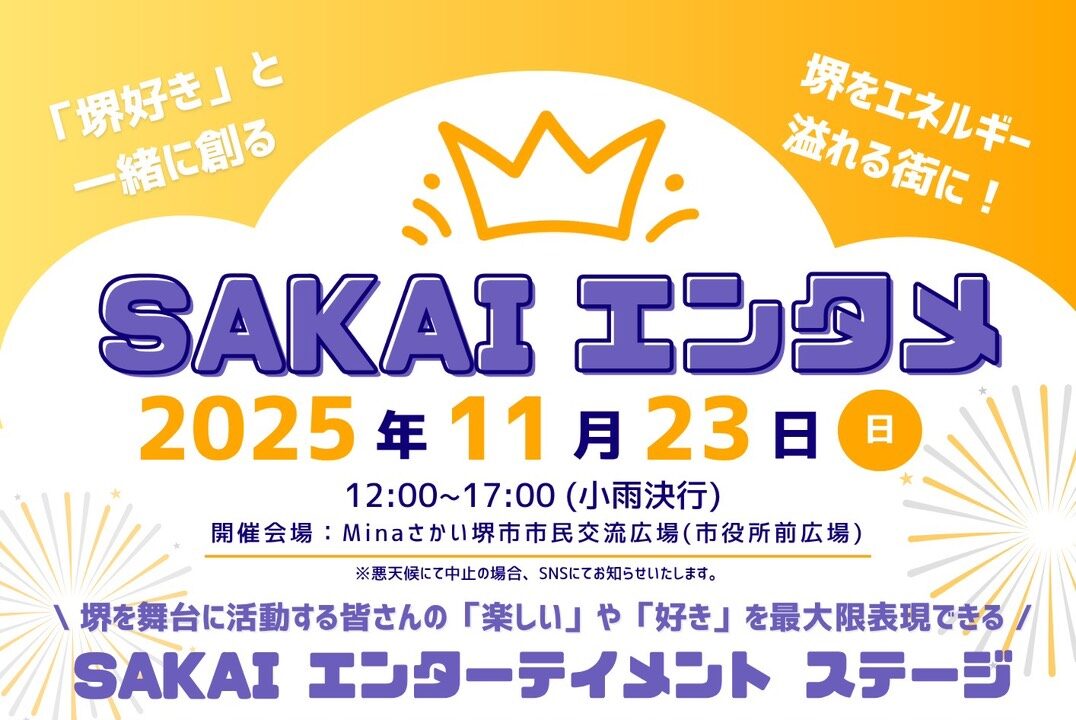 昨年も大盛況だったSAKAIエンタメが 今年も開催されますよ〜!! SAKAIエンタメは、 歌、音楽、踊り、コメディ、大……