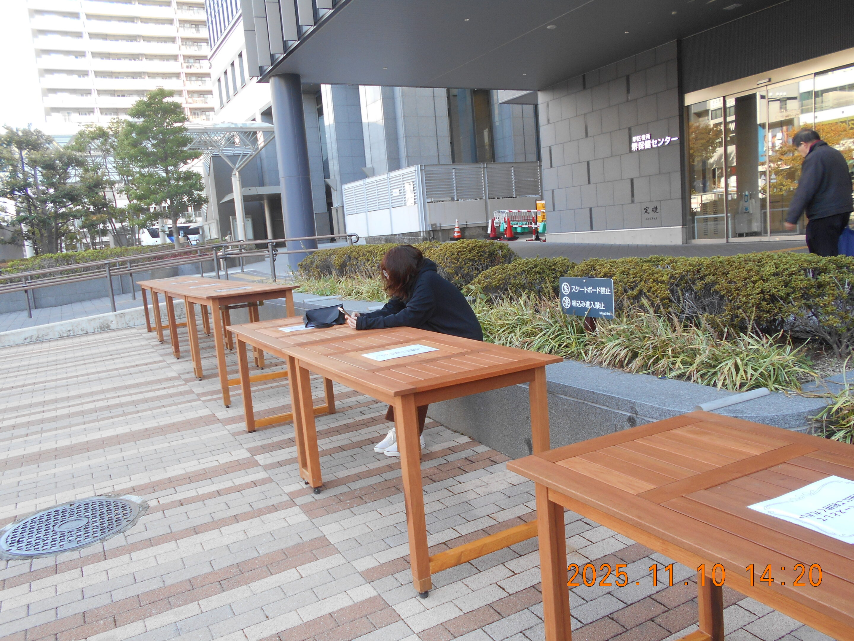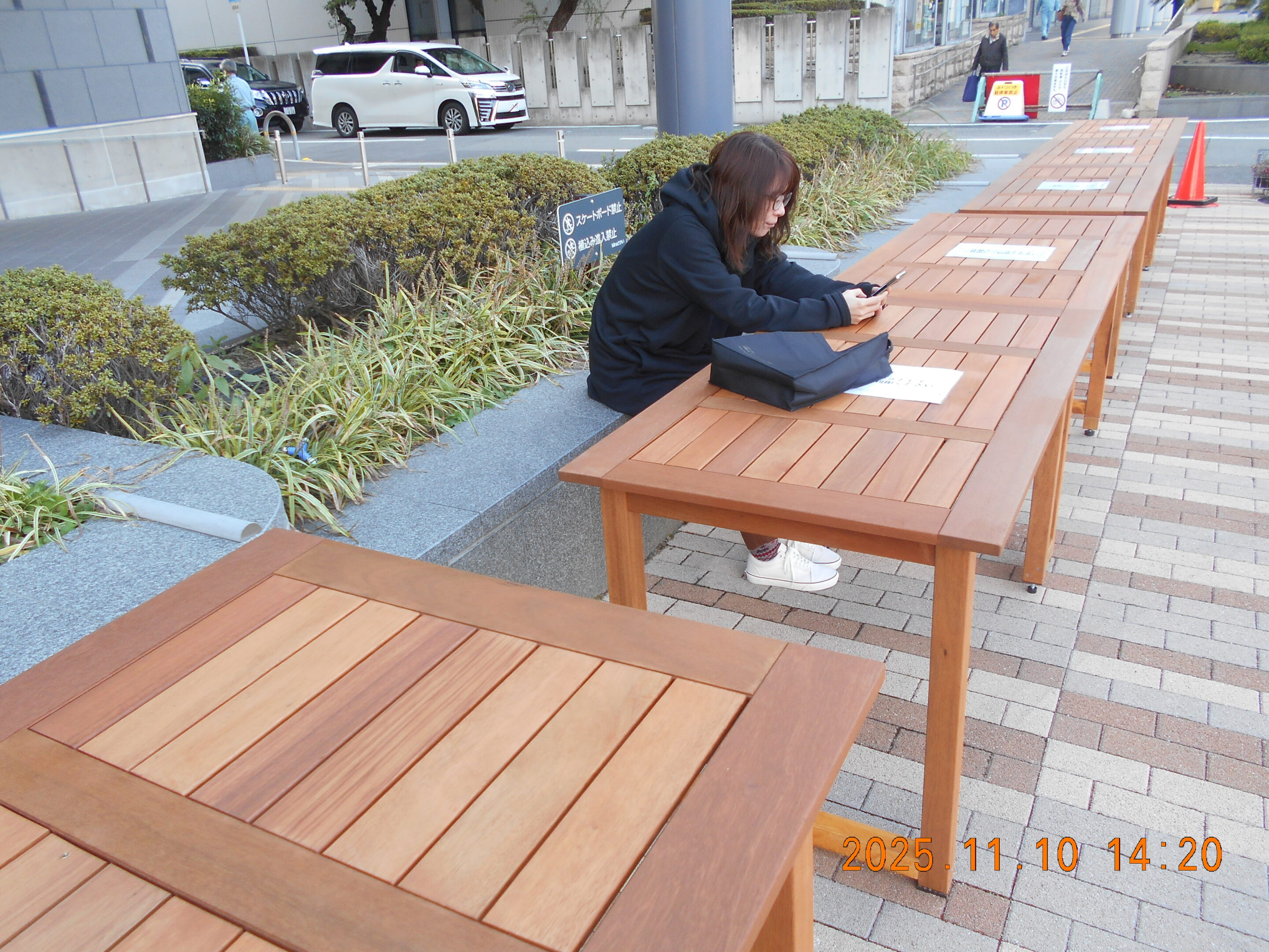 Minaさかいの保健センター前には元々、石ベンチが設置されているとご存じですか? 気軽に腰掛けたりできる便利な石ベンチですが、実はあまり知られていません・・・ もっともっと、この場所を利用してもらいたいとの思いから、この度、目前にテーブルを設置いたしました! ゆったりお茶を飲んだり、お弁当を食べたり、 イベント開催時の休憩スペースとしても利用できます!