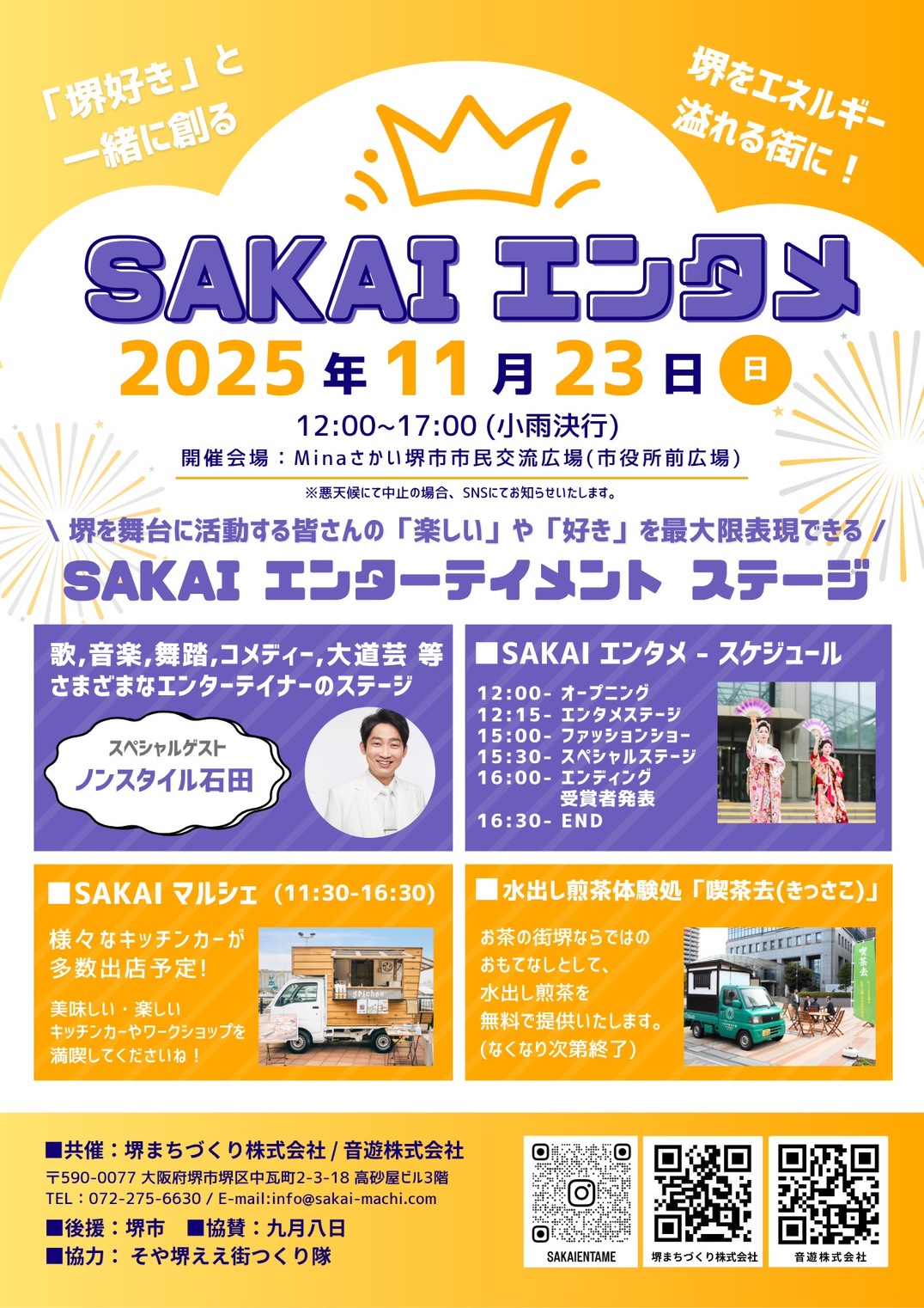 SAKAIエンタメは、 歌、音楽、踊り、コメディ、大道芸その他、 堺で活動するさまざまなエンターテナーが 堺を舞台に……